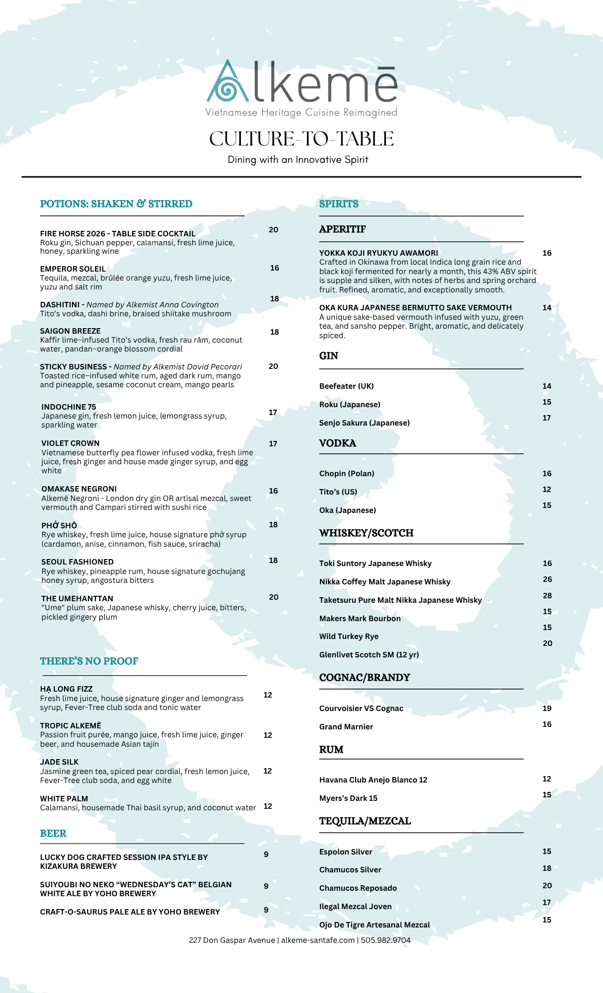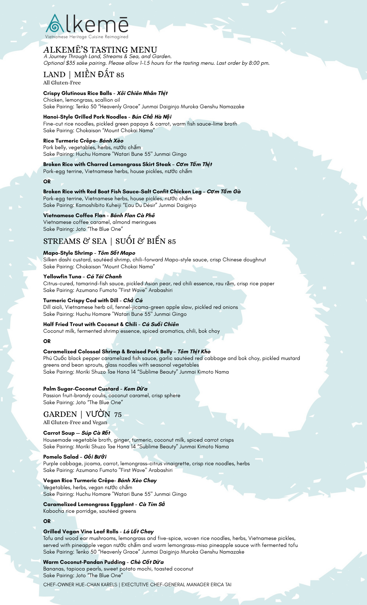 Dining at Alkemē is a unique culture-to-table experience. Our food menu is Asian heritage cuisine reimagined. Chef-Owner Hue-Chan Karels and Executive Chef Erica Tai are reinterpreting heirloom recipes from their culinary roots of Vietnam, Taiwan, Korea, and Hawaii’s Pacific Rim to create dishes that are innovative yet steeped in tradition and culture. If you’ve enjoyed Open Kitchen Events, you will love Alkemē.